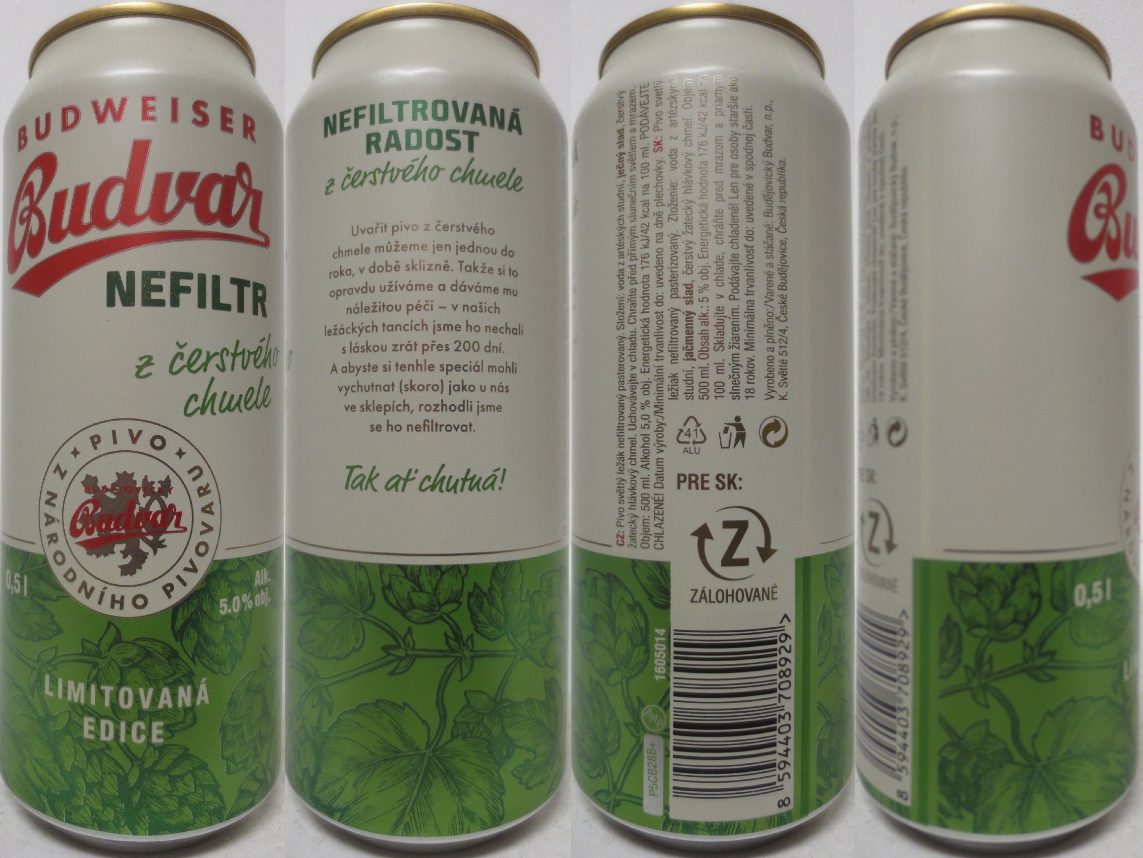 BUDWEISER Budvar NEFILTR z čerstvého chmele LIMITOVANÁ EDICE (50cl) (B/O) č.1